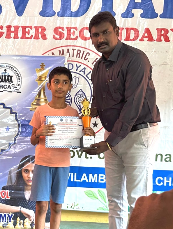 I would like to sincerely thank Raj Kumar Sir, my son Advik’s chess coach, for his incredible support and guidance over the past three months. As a beginner in chess, Advik has benefited immensely from Sir’s personalized approach—suggesting the right books, analyzing his games, and tailoring strategies to his learning pace. Sir’s dedication and patience have made the learning journey enjoyable and encouraging for Advik. A special thanks to Chennai Chess Club for organizing weekly tournaments. These tournaments have provided an excellent platform for Advik to apply his learning, gain practical experience, and build confidence. We are truly grateful for the collective efforts in supporting Advik’s chess journey!